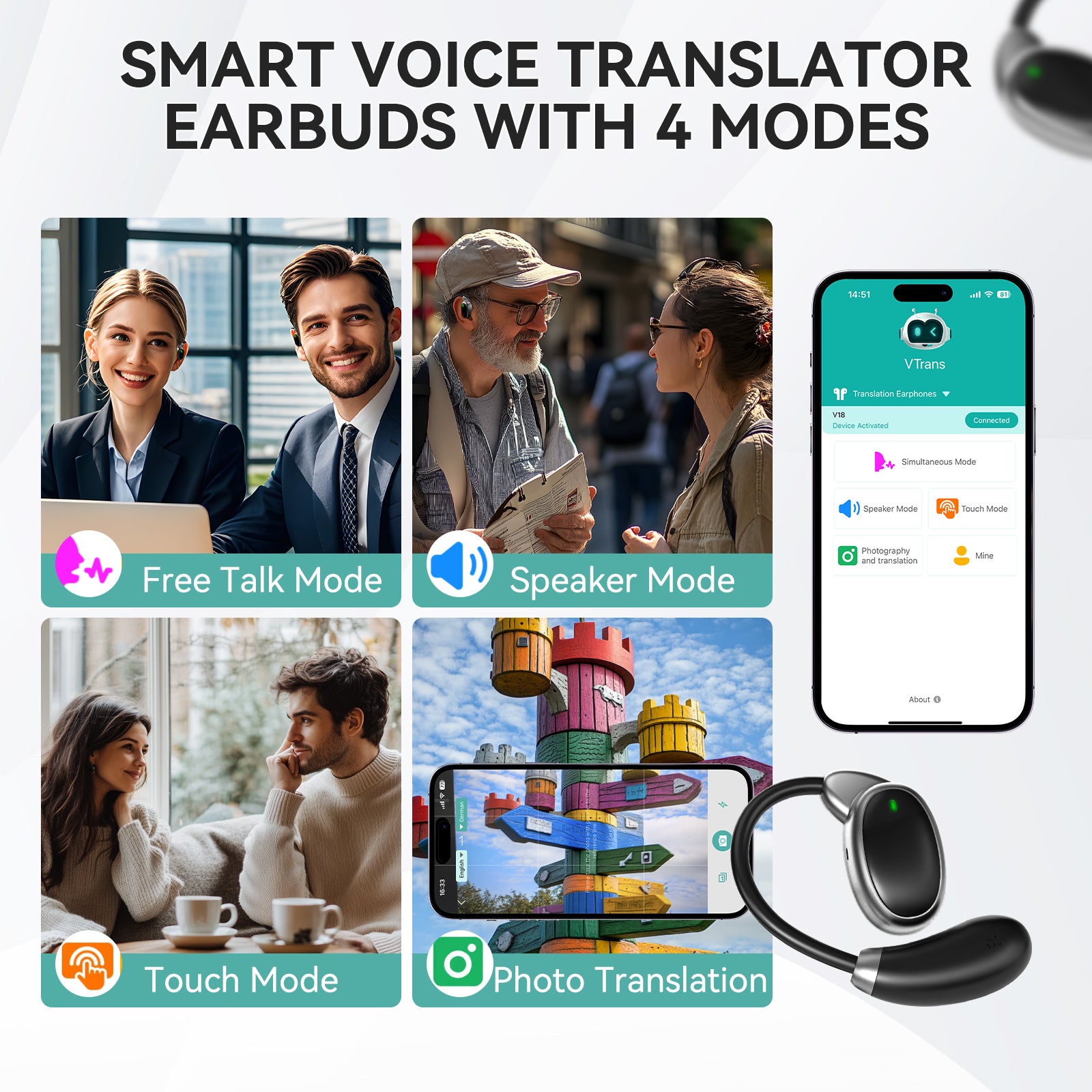 VORMOR V18 Communications servers Language Translator Earbuds Offer Two Way Real-time Translation in 138 Languages for Travel Business and Learning