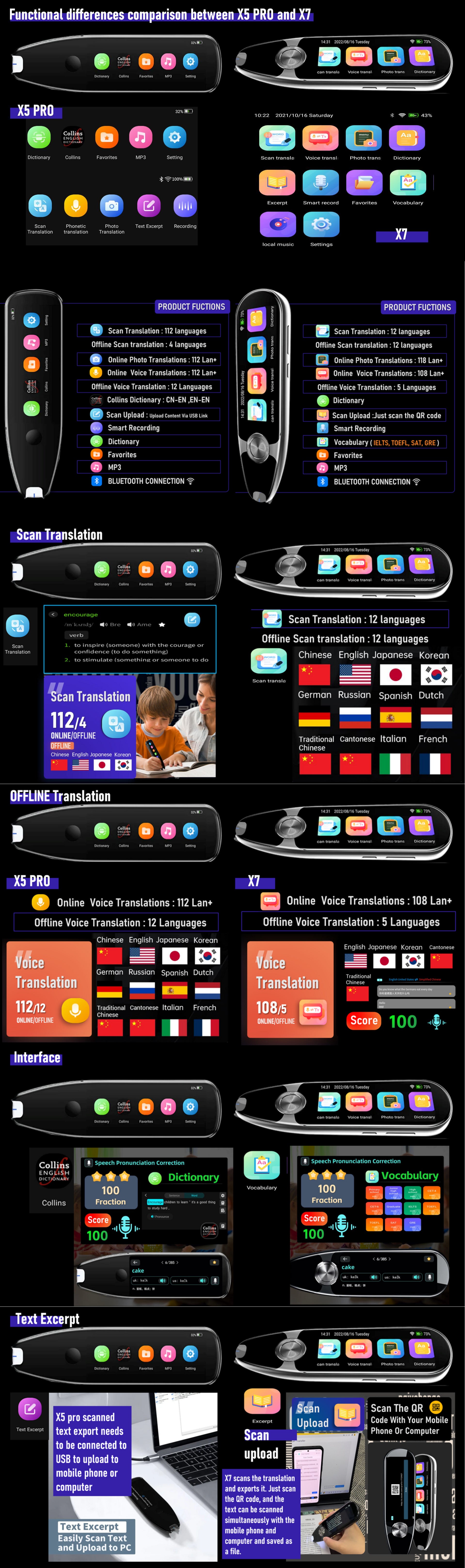 VORMOR X7 Pen Scanner OCR Digital Scanning Translation Pen, High quality Electronic Smart Talking pen with 112languages for kids education