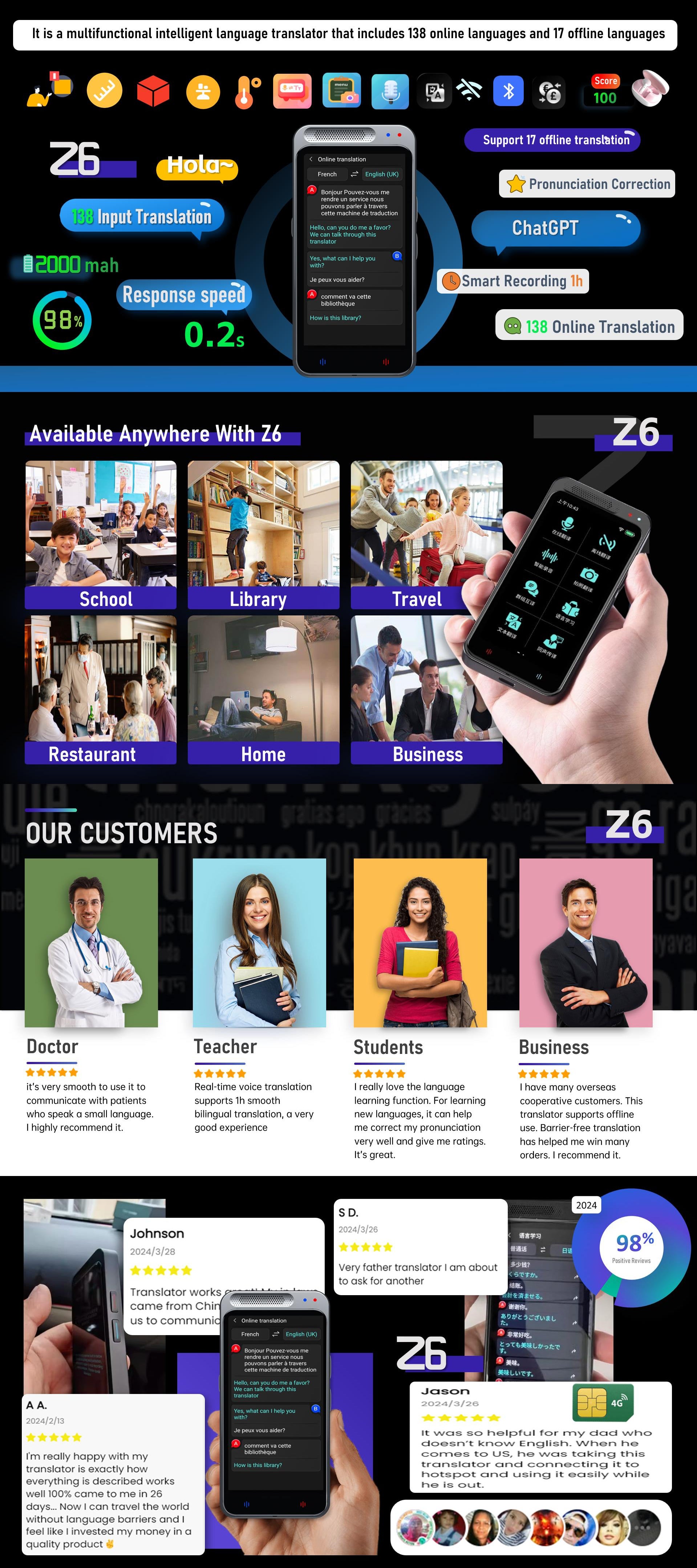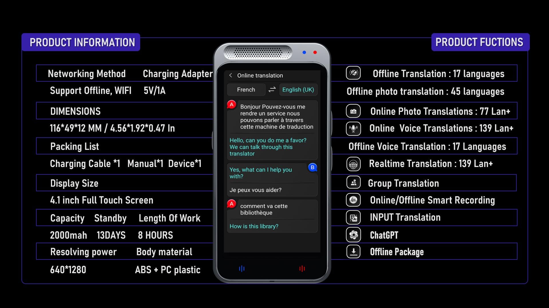 - 1500Mah high-quality battery, 8-hour continuous translation, and up to 7 days in sleep mode.